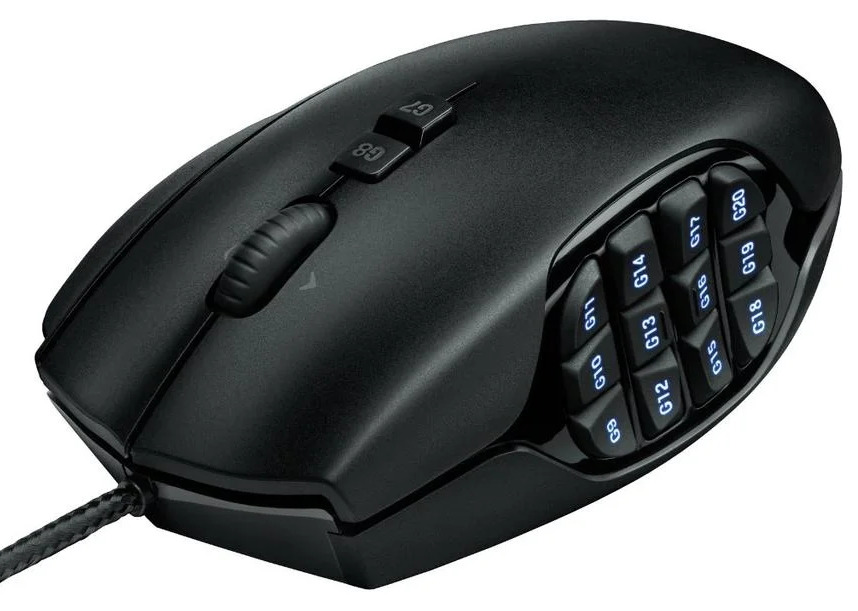 Salah satu pilihan budget untuk mouse gaming adalah model Logitech G600. Plastik, konstruksi masif dengan roda untuk pengguliran horizontal dan 20 tombol dan termasuk kemampuan untuk mengonfigurasinya ulang, adalah sistem kontrol yang menggantikan keyboard standar. Desain tombol yang melengkung yang terletak di atas dan di samping membuatnya nyaman untuk menggunakan perangkat, dan juga memungkinkan Anda untuk menggunakan hampir semua jari.Semua tombol menampilkan lampu latar RGB yang dapat disesuaikan. Tekstur matte di sisi kanan perlengkapan memastikan bahwa tangan Anda benar-benar bersentuhan dengan mouse, yang memungkinkan untuk memegangnya dengan lebih aman dan melakukan gerakan yang diperlukan dengan tepat.