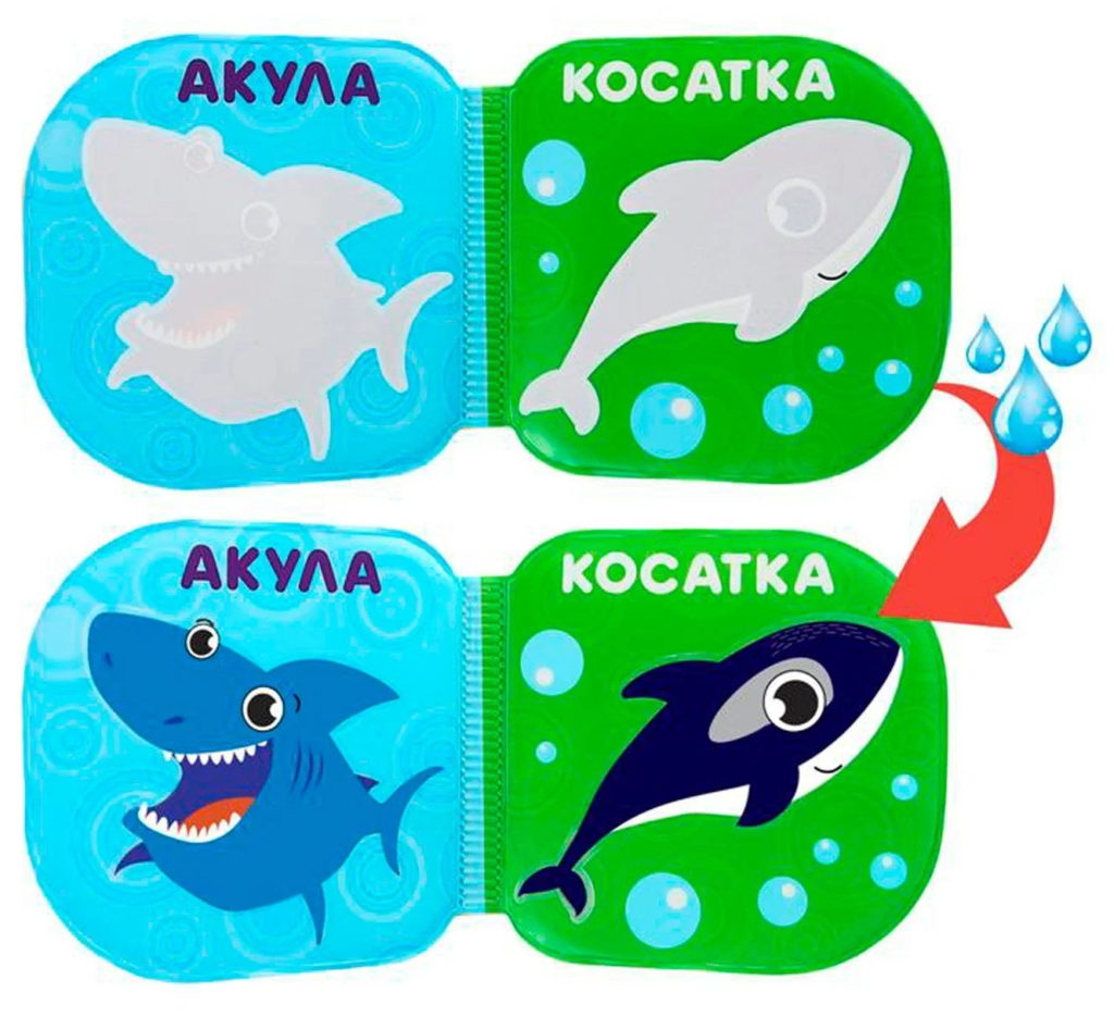 Buku warna-warni cocok untuk permainan seru di kamar mandi. Anak itu akan sangat tertarik melukis buku dengan jari-jarinya. Ketika bersentuhan dengan air, buku-buku itu berubah menjadi warna yang berbeda. Cepat kering dan bisa dicat ulang. Terbuat dari bahan yang aman. Dari usia 4 bulan, sangat menarik bagi seorang anak untuk bermain di kamar mandi, mewarnai gambar di bawah air mengalir. Harga - 265 rubel