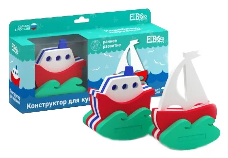 Set dengan bagian besar cocok untuk anak-anak dari segala usia. Kapal dirakit dan dibongkar. Mereka bisa dikunyah saat tumbuh gigi. Dengan bantuan air, perahu menempel pada permukaan yang halus. Harganya 425 rubel.