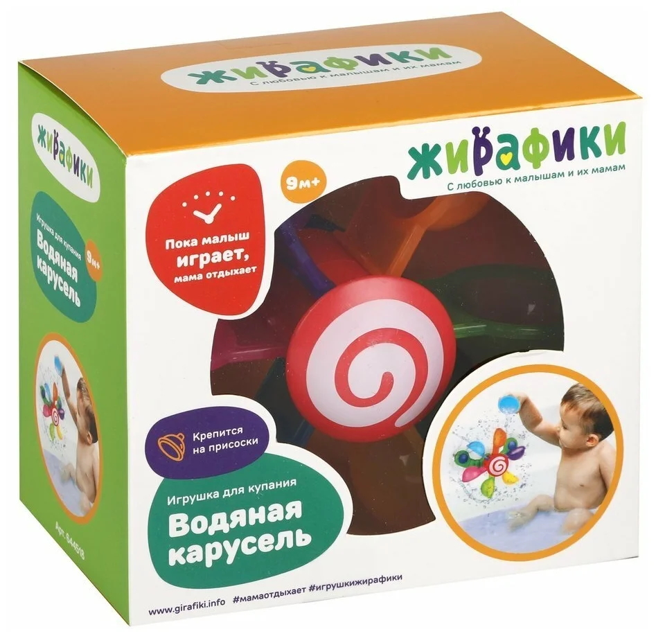 Mainan mandi ceria yang terbuat dari bahan polimer. Cara yang bagus untuk mengembangkan logika dan kecerdikan. Ujungnya bisa dilepas. Korsel berputar ketika air dituangkan ke bilah. Anak akan tertarik menonton ini. Cocok untuk anak mulai usia 9 bulan. Harganya 760 rubel.