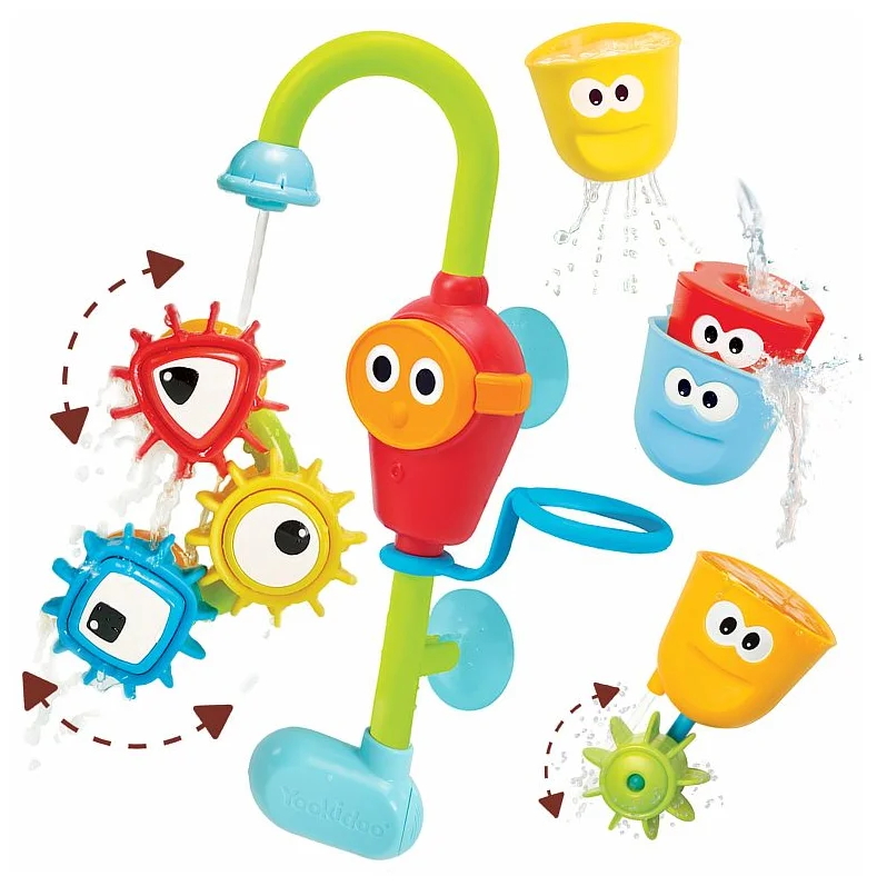 Mainan warna-warni dengan cangkir hisap untuk anak-anak dari satu tahun. Mudah menempel pada dinding bak mandi dan menciptakan aliran air. Bagian derek dapat dipertukarkan. Ternyata mekanisme lain dengan memutar roda gigi. Produk mengembangkan keterampilan motorik halus dan perhatian. Dapat berjalan dengan baterai. Harganya 4400 rubel.