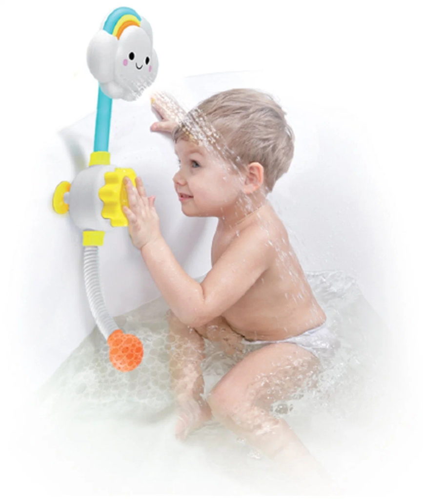 Mainan yang cerah dan indah. Mandi dalam bentuk awan. Produk memiliki selang. Saat ditekan, hujan yang indah turun. Tindakan ini membawa kesenangan besar bagi bayi. Desainnya melekat pada dinding bak mandi dengan cangkir hisap. Harga - 2100 rubel