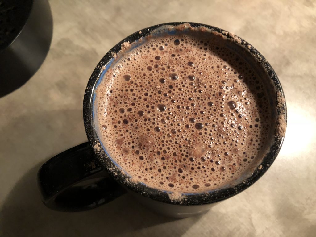 Minuman ini sangat bermanfaat bagi tubuh. Ini memiliki efek menguntungkan pada kekebalan, menambah energi, meningkatkan fungsi otak dan memiliki efek antidepresan. Komposisi bubuk ini mencakup banyak elemen yang berguna, seperti seng dan besi. Kemasannya sangat nyaman. Tas besar dan ketat dengan pengikat khusus di atasnya. Minuman ini diproduksi di Rusia, di Moskow. Warna bubuknya coklat tua, seperti dark chocolate, dan aroma vanilla terasa di aromanya. Berbicara tentang dark chocolate, rasa kakao ini seperti dark chocolate. Banyak endapan mungkin tertinggal di dasar cangkir.