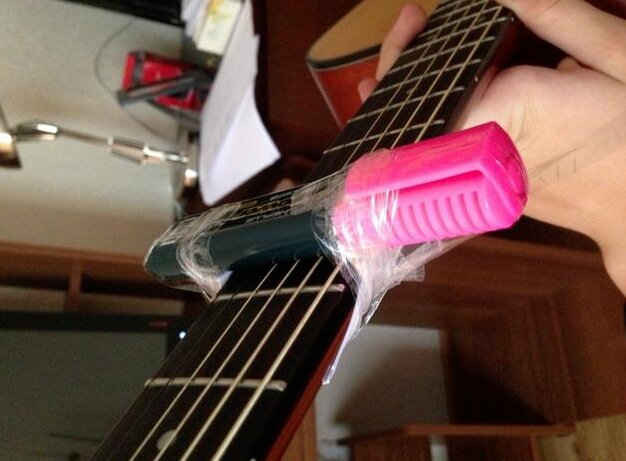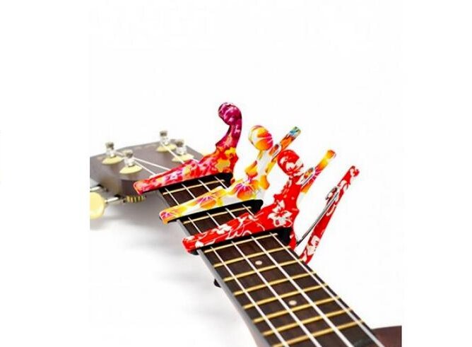 Fungsi penjepit - perubahan tombol cepat. Perangkat menjepit senar di leher, mengubah nada suara. Jika alat musik disetel berbunyi “mi” (E), dan kuncinya adalah “sol”, capo harus disetel ke fret ke-3.