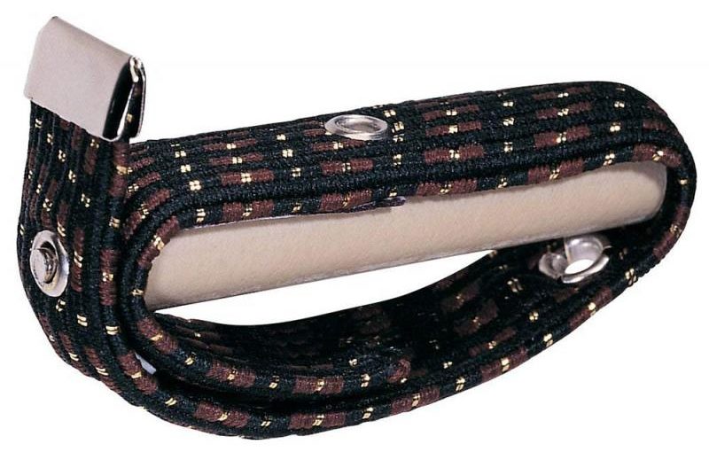 Ini terdiri dari batang (logam, plastik), yang dipasang di leher dengan karet gelang, tali, Velcro. Penekanan senar diatur oleh ketegangan pita elastis, pengencang tali. Klip semacam itu murah (biaya terendah), tidak merusak bagian belakang leher, ringan, memiliki desain yang menarik (berbagai warna), dan menyesuaikan dengan bentuk leher (datar, melengkung).