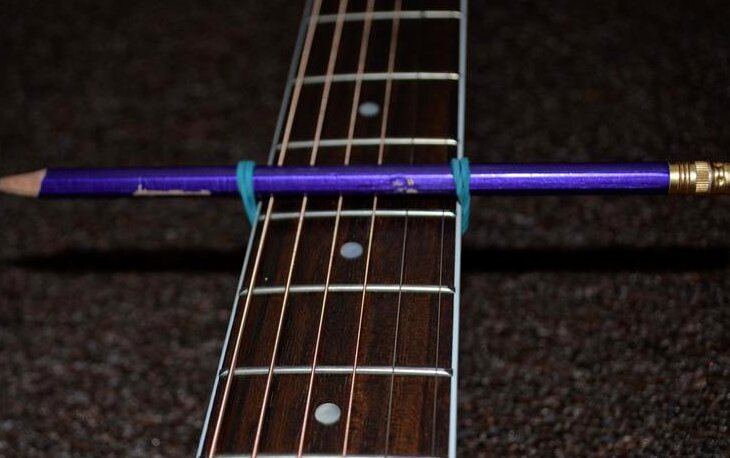 Memilih kunci yang diinginkan - mainkan akor setelah memasang capo. Jika nada tidak sesuai, ubah lokasi perangkat.