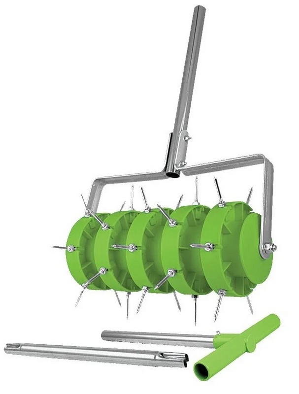 PENTING! Semua jenis rol dapat dilengkapi dengan paku khusus yang dipasang pada drum. Saat bergerak di sepanjang tanah, mereka meninggalkan lubang dengan kedalaman tertentu di atasnya, karena itu tanah diangin-anginkan. Model bertabur disebut aerator.