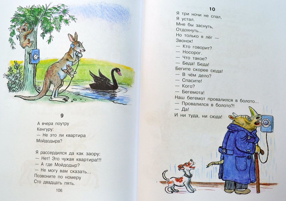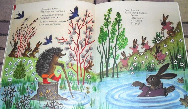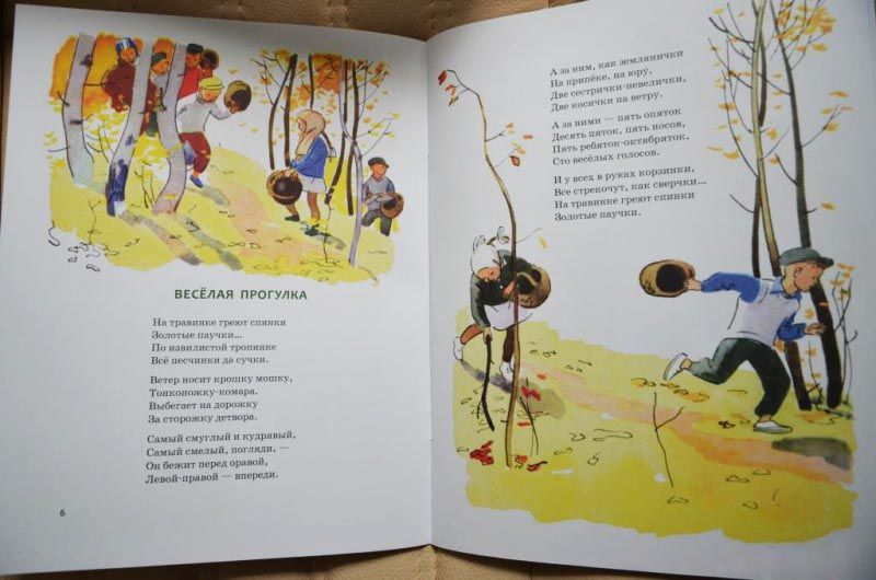 Sebagian besar puisi anak-anak disertai dengan ilustrasi "kanonik" oleh seniman terkenal dan tercinta sejak kecil: dongeng Marshak diilustrasikan oleh karya Lebedev, puisi Chukovsky oleh seniman Suteev, Vasnetsov dan Konashevich, ilustrasi untuk puisi Barto dibuat oleh Chizhikov dan Valk. Beberapa publikasi memuat ilustrasi oleh seniman kontemporer (Antonenkov, Pavlova, Kirdiy, Karamelkin) yang menyampaikan karakter karakter yang tidak kalah jelas.