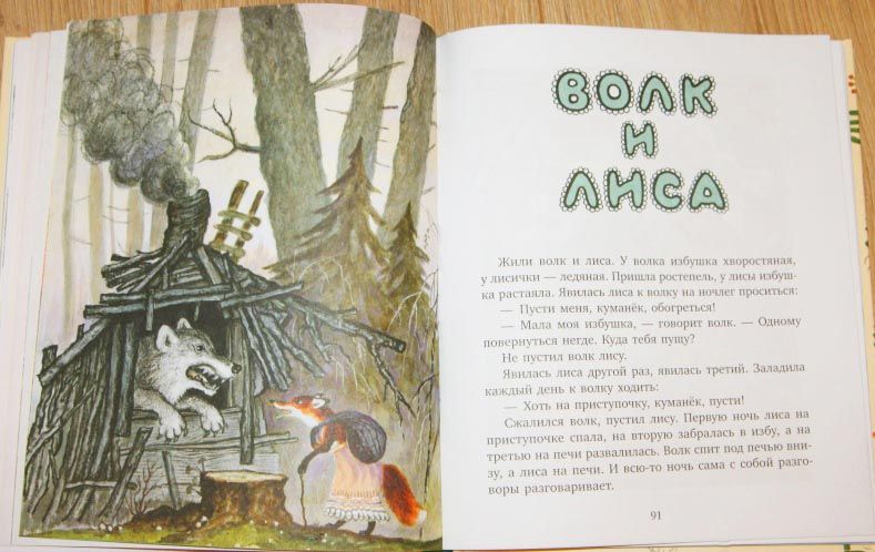 Kumpulan cerita rakyat Rusia yang dicetak ulang, yang karakter utamanya adalah binatang. Karakter mereka diwujudkan dengan sempurna dalam ilustrasi Evgeny Rachev, yang menciptakan gambar hewan dongeng yang menakjubkan - Rubah yang licik, Kelinci Joker yang ceria, Kucing desa yang malas tapi nakal. Dongeng dirancang untuk pembaca termuda.