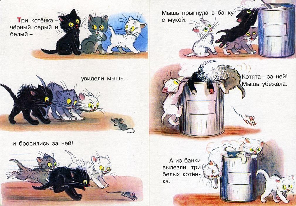 Flip book yang menceritakan tentang petualangan lucu tiga anak kucing ini akan mengajarkan anak-anak untuk berhitung sampai tiga, mengenali dan mengingat warna anak kucing. Plotnya baik, sederhana, anak-anak pasti akan menyukai anak kucing kecil yang penasaran, yang dengannya kisah-kisah menarik dan lucu terjadi.