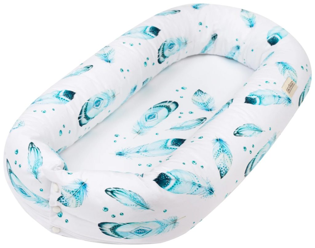 Kepompong kapas untuk bayi baru lahir. Reses yang berada pada sudut yang hampir persis sama dengan posisi rahim ibu, ini memberikan rasa aman tambahan pada bayi. Ini dapat digunakan sebagai tempat tidur untuk tidur malam, atau saat menyusui. Penutup dapat dilepas, dengan ritsleting, nyaman untuk membersihkan dan mencucinya (Anda dapat menggunakannya di mesin cuci), tidak basah jika cairan masuk. Basis terbuat dari busa poliuretan. Ukuran: 66x40 cm Harga rata-rata: 2880 rubel.
