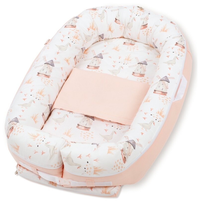 Sarang memiliki bentuk anatomi yang benar, meningkatkan kualitas tidur, cocok untuk tidur bersama ibu dan bayi, dan untuk tidur di tempat tidur terpisah. Juga nyaman untuk membalikkan anak. Penutupnya dapat dilepas, terbuat dari belacu kasar yang padat. Bahannya hypoallergenic, bingkainya ortopedi. Merk : Wellkid. Harga: 1550 rubel.