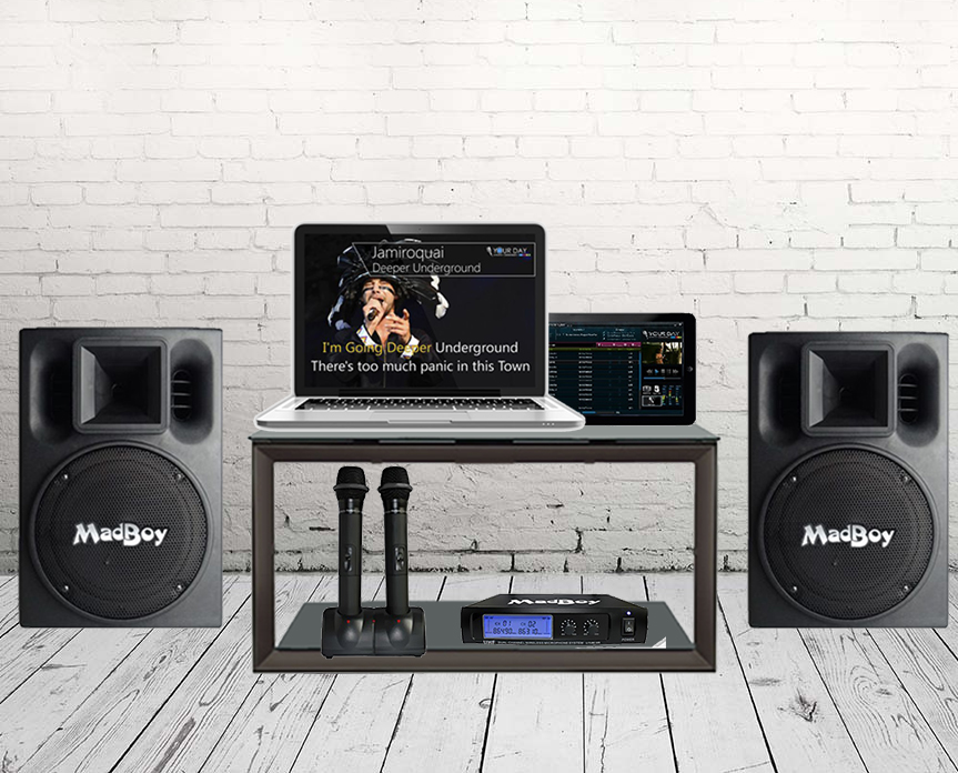 Karaoke yang dirancang untuk digunakan di rumah ini akan membantu menguasai hobi baru bagi pemiliknya dengan mudah, cepat, dan sangat murah. Setelah pembelian, set termasuk mikrofon (dua buah), sistem karaoke Madboy itu sendiri dan CD audio dengan berbagai komposisi.
