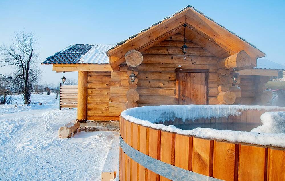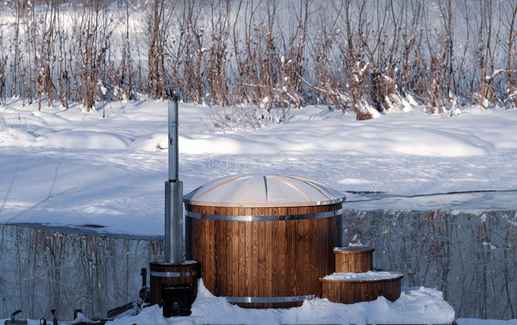 Dengan sisipan yang terbuat dari polipropilena tahan beku yang tahan lama, ditutupi dengan larch, oak, ash. Dapat dipasang di pangkalan yang disiapkan, cocok untuk pendalaman. Kompor baja pembakaran kayu built-in memanaskan air dalam mangkuk hingga 40 derajat, bahkan di salju yang paling parah.