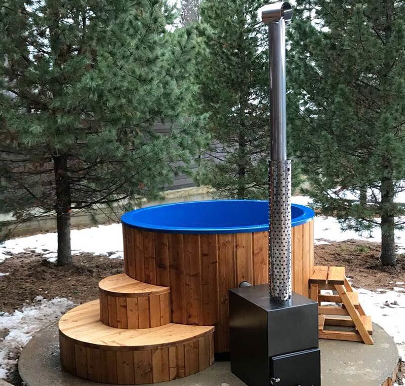 Dengan built-in atau outdoor listrik atau tungku pembakaran kayu. Wadahnya terbuat dari polypropylene setebal 5 mm, lapisan luarnya terbuat dari cedar Siberia. Ketebalan kayu adalah 40 mm. Tangga ramping, kompor itu sendiri dengan cerobong asap termasuk dalam pengiriman. Tutup pelindung, arester percikan dijual terpisah.