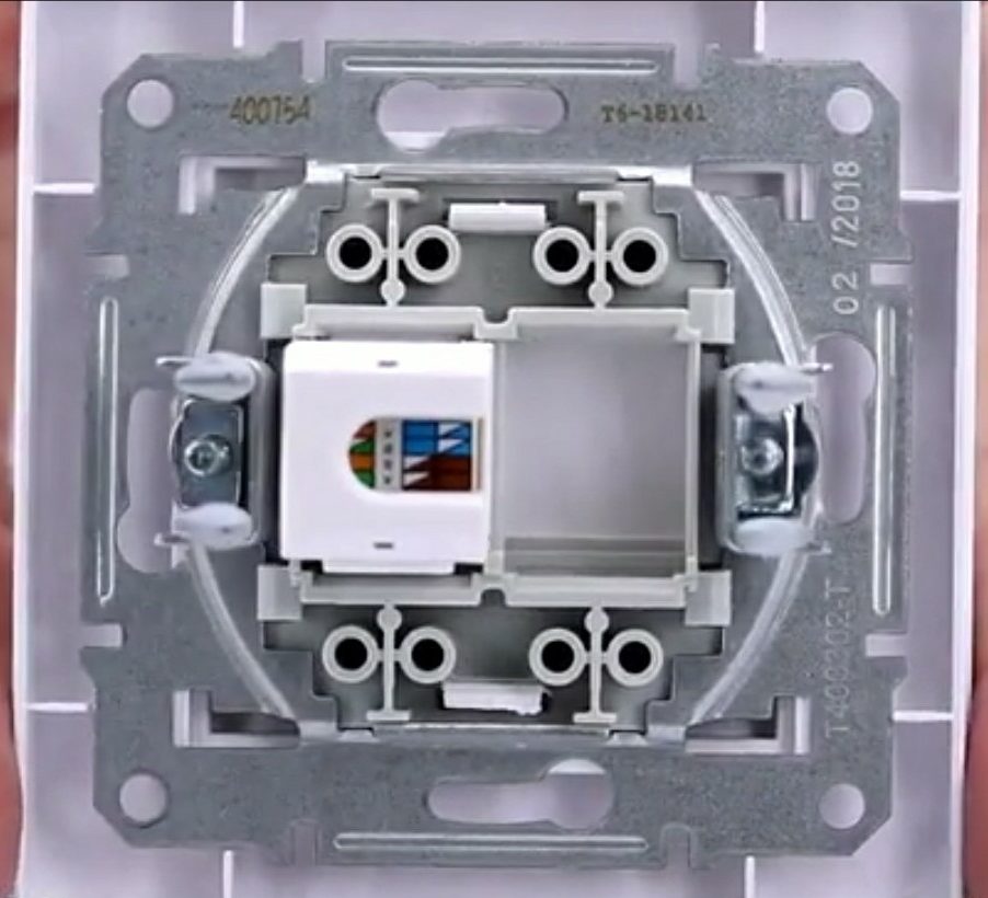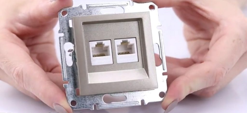 RZ dua soket, yang berisi satu konektor telepon TF untuk 6 pin, serta konektor komputer untuk 8 pin dengan bandwidth yang sesuai dengan standar 6 Cat, warnanya bisa putih.