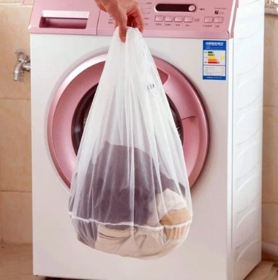 Pilihan yang sangat baik untuk sprei, pakaian luar. Melindungi benda dan drum dari kontak. Cocok untuk pencucian apa pun pada suhu dari 30 hingga 95 derajat. Anda bisa mengeringkannya tanpa mengeluarkannya dari tas. Jala berkualitas tinggi, tidak meregang atau kehilangan bentuk. Ukuran: 50x70 cm Harga: 352 rubel.