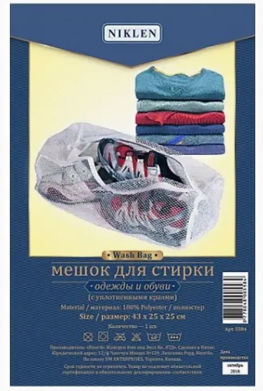 Tas untuk mencuci sepatu dengan ukuran 19x39 cm Memungkinkan Anda untuk mengeringkan barang tanpa mengeluarkannya dari bagasi lemari. Jala ganda tahan lama dan akan bertahan selama bertahun-tahun. Menghilangkan kemungkinan bagian-bagian kecil jatuh ke dalam mesin cuci. Biaya rata-rata: 444 rubel.