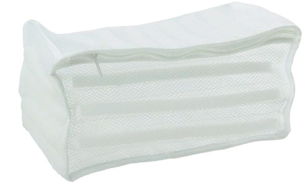 Desain khusus untuk sepatu dengan ukuran berbeda. Menghilangkan deformasi, sekaligus melindungi mesin dari memasukkan berbagai bagian ke dalam drum (tali, paku keling, dll.). Warna putih tidak kehilangan kecerahan, tidak aus seiring waktu. Ukuran: 35 19 × 19 cm Biaya: 489 rubel.