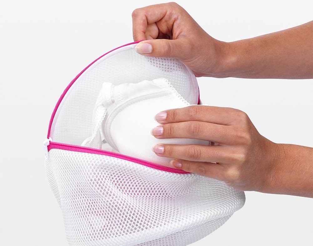 Nylon paling sering digunakan untuk tas pakaian dalam, lebih lembut. Poliester adalah bahan yang tahan lama dan aman yang dapat melewati air, udara, dan busa dengan baik. Pilihan plastik digunakan untuk hal-hal yang dapat berubah bentuk (mencuci bra).
