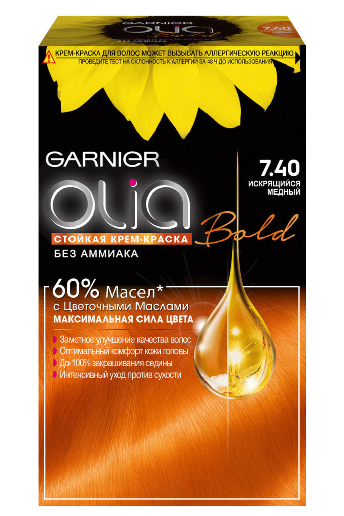 Meskipun tidak ada amonia dalam komposisi, "Garnier Olia" menjamin nada ekspresif yang tahan lama tanpa merusak struktur rambut - minyak bunga dalam komposisi produk merawat kulit kepala selama proses pewarnaan, memberikan kilau alami pada rambut ikal, dan juga bertanggung jawab atas pelestarian saturasi jangka panjang dari naungan yang dihasilkan.