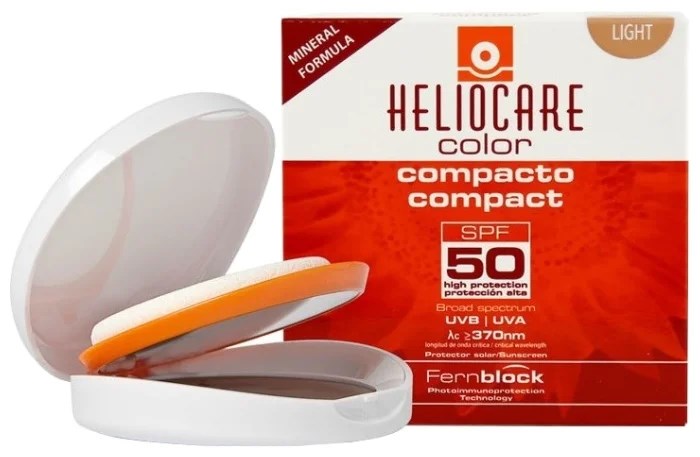 Sangat menarik dalam sifat dan komposisinya adalah produk dari perusahaan Spanyol HELIOCARE, yang spesialisasi utamanya adalah tabir surya. Kami segera mencatat bahwa bubuk krim ini memiliki tingkat perlindungan matahari 50. Ini menjadikannya alternatif yang bagus untuk tabir surya berminyak. Ini tidak hanya melindungi terhadap radiasi UV, tetapi juga meratakan nada, menyembunyikan ketidaksempurnaan. Pada saat yang sama, kulit tidak akan dipenuhi dengan lapisan krim ekstra. Semua hal di atas dimungkinkan berkat fisik, kimia dan, yang dikembangkan oleh perusahaan, filter surya biologis. Juga, komposisinya kaya akan komponen yang bertanggung jawab untuk perlindungan antioksidan, melestarikan struktur dan DNA. Sebagai dasar, bubuk krim Spanyol mengatasi tugas sepenuhnya: meratakan nada, menutupi ketidaksempurnaan. Pengguna memperhatikan kemudahan distribusi dan hasil akhir yang cerah. Tersedia untuk kulit berminyak (Compact SPF50 Oil-Free) dan kulit kering (Compact SPF50 Mineral Formula).