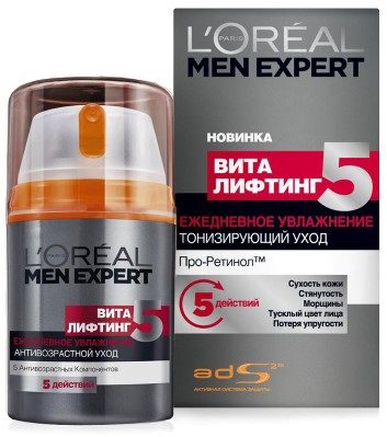 Laboratorium perusahaan Prancis telah mengembangkan krim pelembab berkualitas tinggi untuk kecantikan kulit pria yang menua. Bebas paraben dan bebas pewangi, cocok untuk kulit sensitif dan rusak. Komposisinya termasuk rumput laut, proksilan, plankton, yang membantu mempertahankan kelembaban di lapisan dalam dermis dan meningkatkan elastisitas relief.