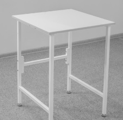 Model ini dirancang untuk eksperimen kimia dan pekerjaan kertas untuk satu pengguna. Itu dipasang di laboratorium dan lembaga medis lainnya. Penyangga logam (tahan korosi) dapat disesuaikan tingginya. Permukaan kerja memiliki lapisan bubuk polimer.