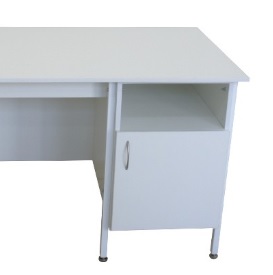 Desain klasik yang memenuhi semua persyaratan peraturan. Kerangka terbuat dari pipa profil dengan penutup polimer dan bubuk.Bagian atas meja dilindungi oleh tepi PVC (ketebalan 2 mm), yang tahan terhadap kerusakan mekanis. Di bagian bawah ada 2 lemari: satu dengan ceruk dan pintu, yang lain dengan laci pada pemandu rol dan ceruk. Penyangga meja dapat diatur ketinggiannya dalam kisaran 0-30 mm.