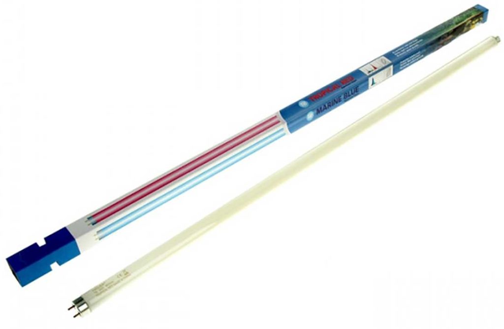 Lampu neon merk Laguna. Tiang G13. Ideal untuk sebagian besar karang lunak. Ini dapat digunakan dalam desain akuarium air tawar. Harga rata-rata: 679 rubel.