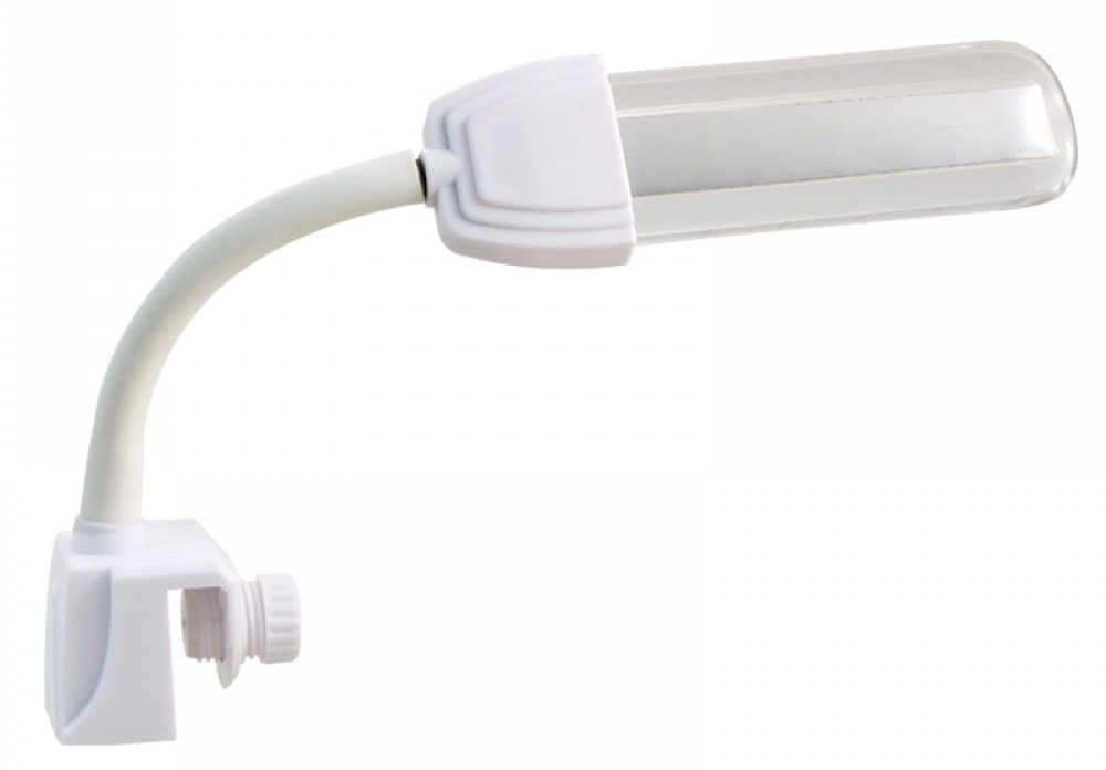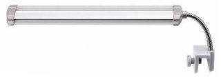 Cahaya aktinik yang terang sangat ideal untuk akuarium terumbu karang. Perumahan aluminium tahan lama dengan pembuangan panas yang efisien. Lengan menekuk ke segala arah, memungkinkan Anda mengarahkan cahaya ke arah yang benar. Ditempatkan pada kaca. Harga: 7245 rubel.