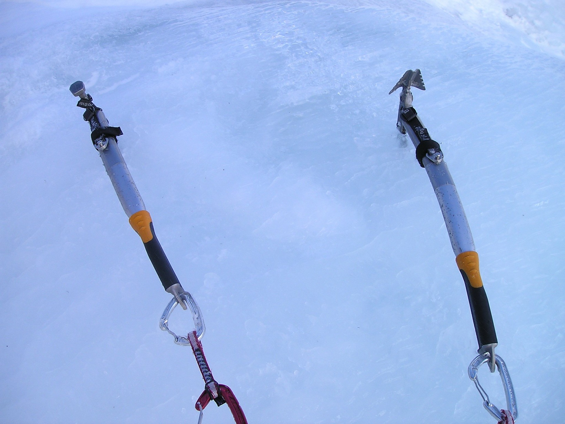 Beberapa saat kemudian, pendaki mulai menggunakan kait pembuka botol. Tipis, dengan penampang kecil, mereka hanya bisa menahan beban kecil. Dan memutar ke dalam es terus menjadi sulit. Mengembangkan kemampuan teknis alat, para pengrajin sampai pada kesimpulan bahwa adalah bijaksana untuk menggunakan tabung berlubang untuk memutar menjadi es. Itu perlu untuk memalunya ke dalam es hanya sepertiga dari panjangnya, lalu itu benar-benar disekrup.