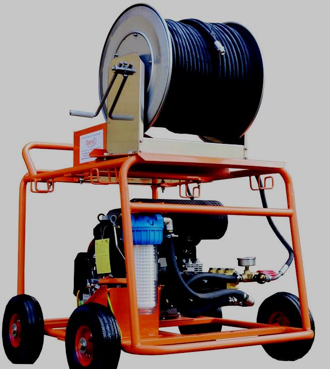 | kekuatan besar | Dilengkapi dengan mesin diesel atau bensin. Tujuan utamanya adalah untuk membersihkan pipa saluran pembuangan eksternal. Sering digunakan untuk merapikan infrastruktur perkotaan. Memberikan tekanan hingga 30 MPa. Panjang selang bisa 120 m. |