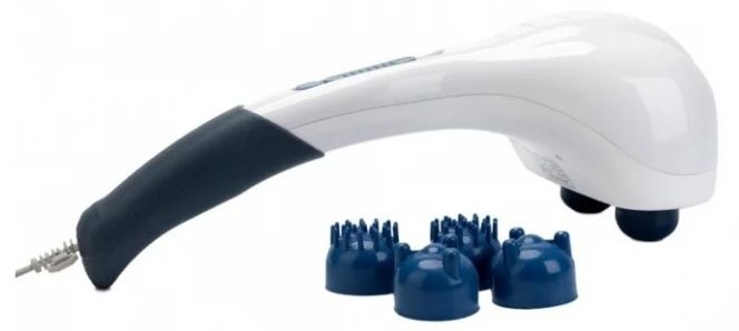 Alat pijat dengan bola untuk leher, tetapi dapat digunakan untuk pinggang dengan meletakkan bantal di kursi rumah atau mobil. Dilengkapi dengan pemanas inframerah, memiliki beberapa mode dan melakukan banyak fungsi. Ini dikendalikan oleh satu tombol, dapat dioperasikan dari pemantik rokok, memungkinkan Anda untuk mengubah arah putaran.