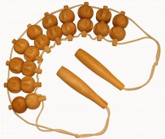 Perangkat kayu dengan pegangan, memungkinkan Anda untuk memijat seluruh area punggung. Ini terdiri dari dua jenis elemen pijat: rol longitudinal dan studded, sehingga saat mengoperasikan struktur, upaya fisik dapat diterapkan ke zona lunak yang terletak di kedua sisi tulang belakang.