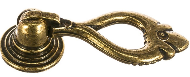 Contoh yang indah, terbuat dari logam padat dengan gaya melingkar. Basisnya dirancang khusus dengan berbagai "kerusakan" dekoratif agar sesuai dengan gaya retro. Ini paling baik digunakan di interior tradisional dan untuk laci besar, yang, bagaimanapun, akan membutuhkan kehadiran dua perlengkapan di ujungnya. Pemasangannya mudah dan hanya membutuhkan satu sekrup. Negara asalnya adalah Cina. Harga toko yang disarankan adalah 95 rubel.