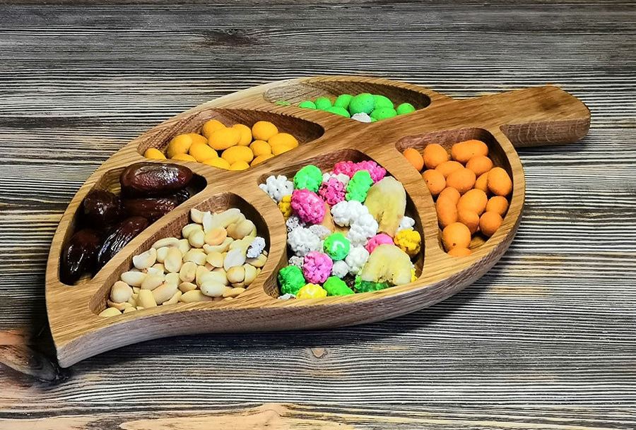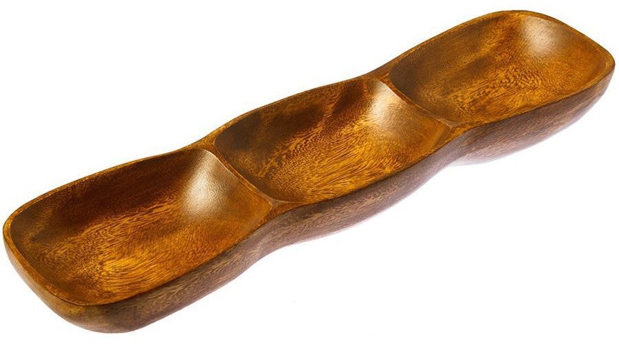 Model lima bagian yang terbuat dari kayu birch alami dan dilapisi dengan minyak makanan khusus. Cocok untuk digunakan di rumah, serta di perusahaan katering - kafe, restoran, hotel.Ini memiliki bentuk persegi, dilengkapi dengan kompartemen tengah untuk saus atau madu, di empat kompartemen yang tersisa Anda dapat menyajikan hidangan seperti kacang, keju, zaitun, makanan ringan, manisan atau buah-buahan kering. Panjang dan lebar piring 28 cm Tinggi - 1,8 cm Disarankan untuk mencuci mangkuk dengan tangan, tanpa menggunakan spons keras dan pembersih abrasif. Biaya rata-rata adalah 4.500 rubel.