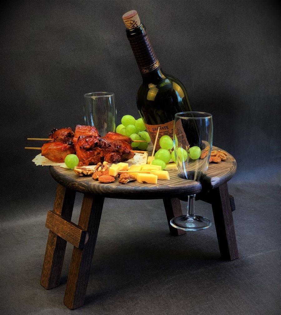 Model asli meja kecil rapi untuk wine dan snack. Terbuat dari kayu pinus dan beech alami. Kebun anggur seperti itu memiliki banyak pilihan untuk digunakan, akan lebih mudah untuk membawanya bersama Anda ke piknik di alam, ke pertemuan romantis. Dengan bantuan pembuat anggur seperti itu, akan lebih mudah untuk menyajikan sarapan di tempat tidur, serta menghabiskan waktu dengan nyaman di mana saja - di tepi kolam renang, di pedesaan, atau menonton film. Tabel diproses dan diresapi secara kualitatif, oleh karena itu benar-benar aman dan sepenuhnya siap untuk digunakan. Kenyamanan tambahan dibuat dengan melipat kaki, karena itu nyaman untuk membawa meja bersama Anda dalam perjalanan apa pun. Produk tidak memakan banyak ruang karena kekompakannya - meja berdiameter 29 cm dan tinggi 17 cm Vinnitsa juga bisa menjadi hadiah asli. Model ini dirancang untuk satu botol dan dua gelas. Biaya rata-rata adalah 1.638 rubel.