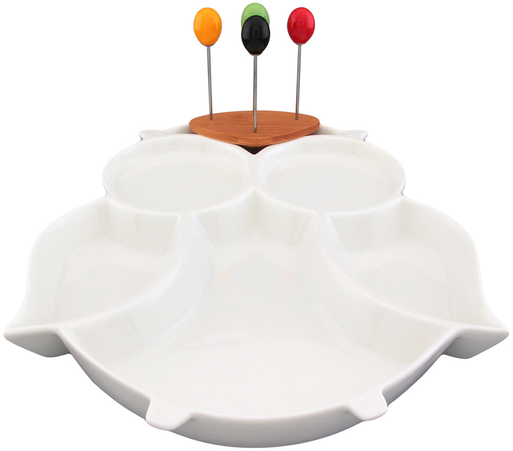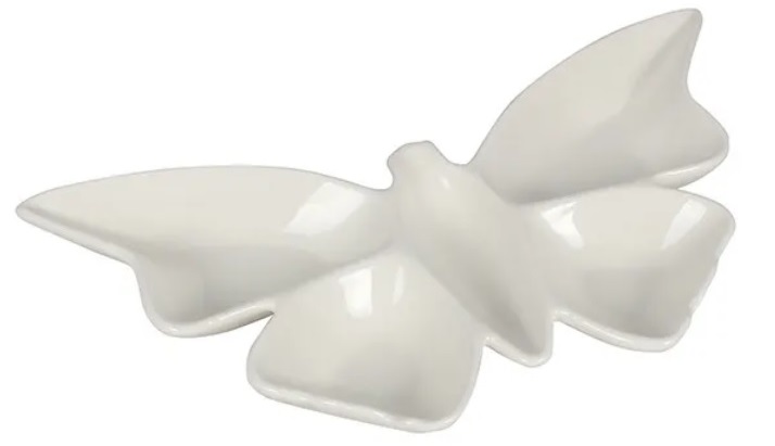 Casing berbentuk kupu-kupu putih yang anggun. Piring terbuat dari keramik berkualitas tinggi dan dibagi menjadi lima bagian yang cukup luas. Di kompartemen Anda dapat menempatkan kacang, makanan ringan, salad, zaitun, hidangan manis. Penampilan hidangan yang elegan dan menyenangkan akan menghiasi pengaturan meja apa pun dan secara organik cocok dengan interior. Selain itu, "Kupu-kupu" akan menjadi hadiah yang bagus. Adapun ukuran item, panjangnya 31 cm, lebar - 20 cm, tinggi - 3 cm, biaya rata-rata adalah 390 rubel.