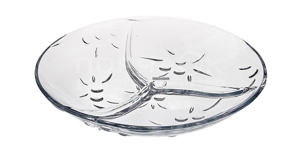 Model murah, terbuat dari kaca transparan berkualitas tinggi, dihiasi dengan ornamen relief tipe klasik. Piring memiliki bentuk bulat dan dibagi menjadi 4 kompartemen yang sama. Pasabahce cocok untuk menyajikan potongan sayuran dan daging, salad, semua jenis hidangan, makanan ringan, dan makanan penutup. Berkat dimensinya yang ringkas, peralatan makan ini menghemat ruang di atas meja. Bahan produksi - gelas natrium kalsium silikat - memungkinkan Anda untuk mencuci model di mesin pencuci piring. Dimensi barang - 27 cm (diameter), 5 cm (tinggi). Biaya rata-rata adalah 227 rubel.