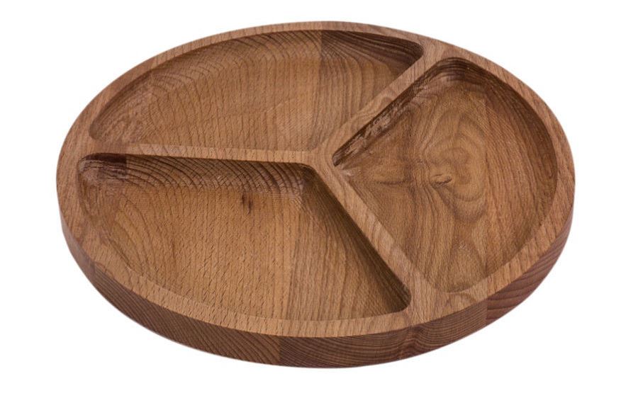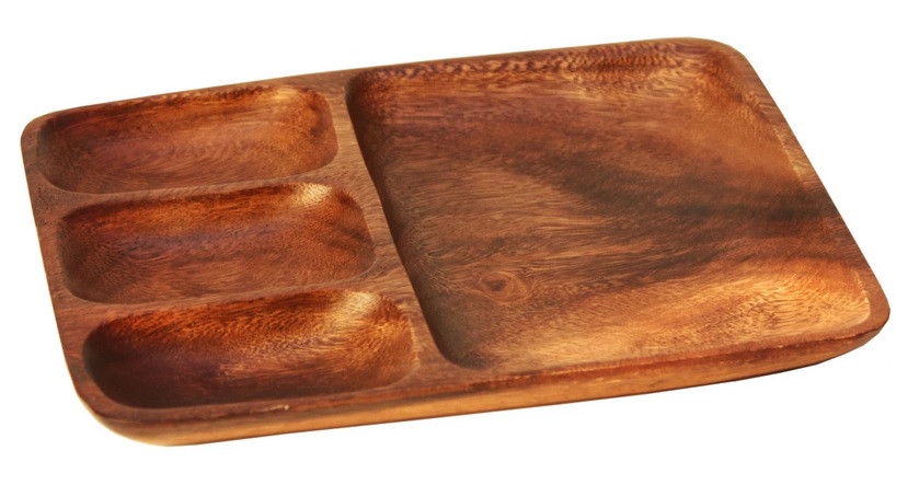 Kayu. Bahan alami dan ramah lingkungan yang membuat item terlihat gaya, dan produk yang ditempatkan memiliki daya tarik tambahan. Karena pohon mampu menyerap lemak, kelembaban, bau, tidak disarankan menggunakan mangkuk kayu untuk menyajikan hidangan panas, salad, atau saus. Model jenis ini dirancang untuk memotong, keju, bumbu, buah-buahan, serta untuk menyajikan keripik, kacang, roti atau kue.