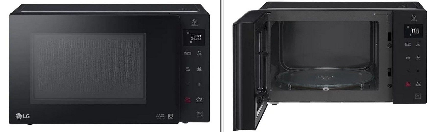 Peralatan rumah tangga berdiri bebas dengan tampilan modern, tanpa meja putar, dengan pemandu baki di tiga tingkat. Desainnya dilengkapi dengan tampilan digital, bodi model berwarna hitam dengan pintu berengsel dan pegangan untuk bukaan. Microwave memungkinkan Anda memasak makanan diet, berkat fungsi "memasak uap", serta hidangan biasa dengan daging panggang (kerak).