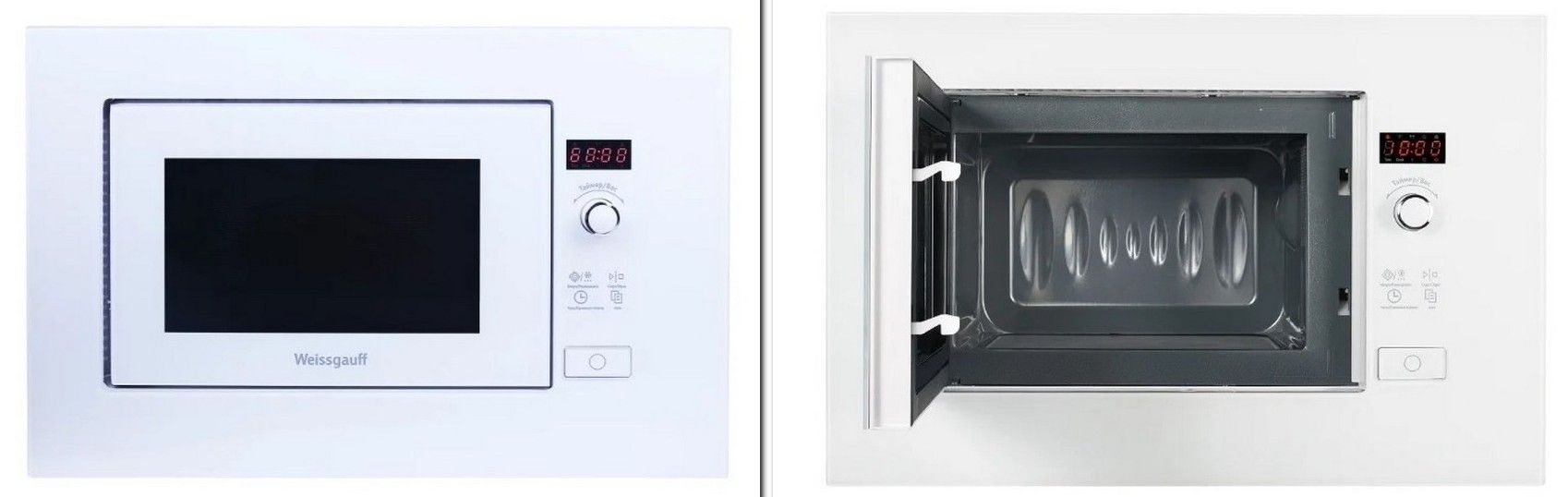 Model built-in dalam warna putih akan cocok dengan interior dapur desainer mana pun. Pilihan bagus untuk ruang kecil. Nilai tambah yang besar adalah fungsi otonom memasak dan mencairkan es, serta sifat distribusi gelombang mikro yang seragam. Berkat fitur ini, oven dijual tanpa meja putar. Pintu berengsel, terbuka dengan tombol.