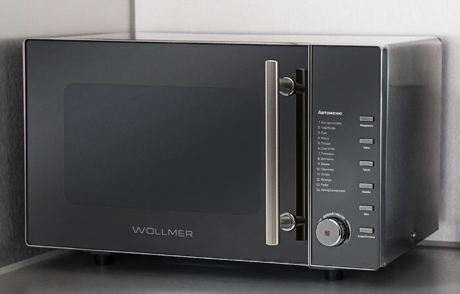 Peralatan dapur ditempatkan secara terpisah di atas permukaan datar, dilengkapi dengan panggangan kuarsa (daya 900 W), kontrol elektronik, dan layar sentuh. Ini memiliki sistem built-in untuk distribusi gelombang mikro yang seragam, penerangan kamera dan sinyal suara.