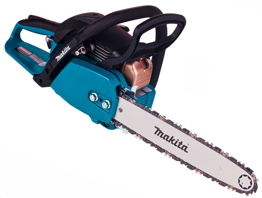 Membuka peringkat gergaji mesin rumah tangga terbaik Makita EA3202S-40, yang, selain desainnya yang nyaman, memiliki mesin 1,8 hp. Mesin dimulai dengan pengapian primer dan elektronik. Desainnya mencakup pompa oli dengan regulator, sistem rem Safetymatic, dan peredam getaran untuk pengoperasian yang nyaman.Dalam bermacam-macam pabrikan, ini adalah salah satu opsi rumah tangga terbaik, karena pembeli hampir selalu merespons secara positif. Perhatian khusus harus diberikan pada pegangan yang nyaman dan pegangan tambahan.