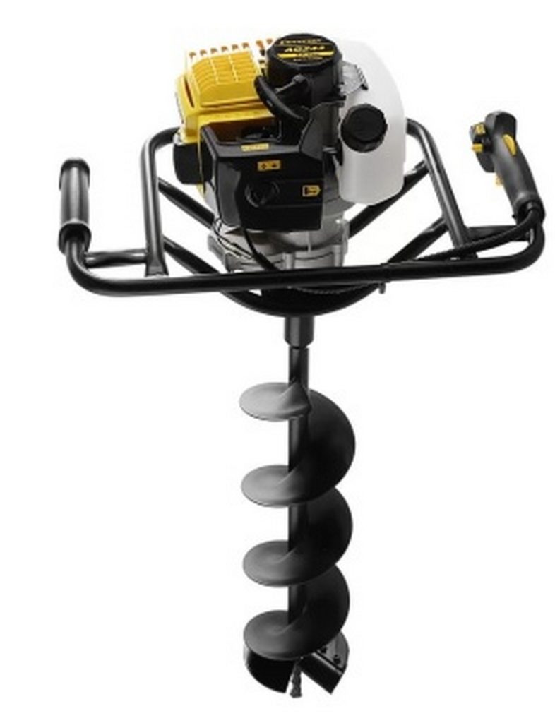 Alat ini bisa disebut model semi-profesional. Perbedaan utamanya adalah penggunaan bingkai yang bentuknya tidak biasa. Dengan itu, mudah untuk menggali lubang untuk fondasi dan untuk memasang tiang penerangan dan tiang pagar. Diameter lubang maksimum diatur ke 30 sentimeter. Preferensinya adalah bekerja sama, terutama saat mengebor hingga kedalaman lebih dari satu meter. Tenaga mesin 2,4 kW, dengan volume tangki bahan bakar 1,2 liter. Biaya yang disarankan untuk toko ritel adalah 17.000 rubel.