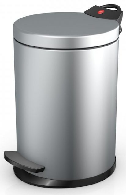 Produk silinder kecil dengan penutup. Terbuat dari baja dan dilengkapi dengan pedal. Ini akan sempurna melayani baik di dapur atau kamar mandi, dan di kantor. Desainnya memiliki liner ember plastik internal, yang dapat dilepas jika perlu.