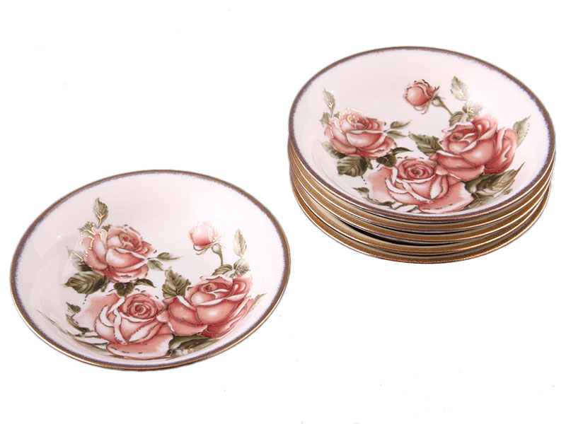 Satu set piring "Yuvel" (biru) termasuk 6 item, berdiameter 130 mm, dengan dekorasi emas.