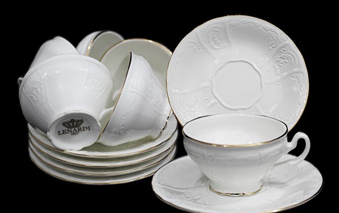 Set ini adalah "gagasan" dari perusahaan manufaktur Cina "Lenardi". Produk merek ini sangat dikenal di pasar Rusia. Mereka dibedakan oleh melodi unik mereka, komposisi berdinding tipis dan putih. Perlu juga dicatat biaya barang yang lebih rendah dibandingkan dengan merek sebelumnya. Tetapi itu juga tergantung pada kualitas bahan baku (tingkat keberadaan tanah liat putih dalam massa mentah), dari mana produk dibuat. Semua peralatan makan Lenardi sangat indah dan unik. Mereka benar-benar akan menjadi hiasan meja pesta apa pun dan memenuhi persyaratan paling ketat dari para pecinta peralatan teh.