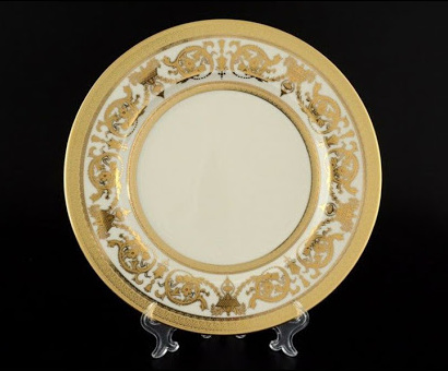 Model set ini juga merupakan perwakilan dari perusahaan sebelumnya. Dinyatakan dalam jumlah 6 buah, dengan diameter 150 mm. Set seperti itu akan menghiasi pesta apa pun dan menambah kekhidmatan bahkan untuk minum teh setiap hari. Bentuk klasik dari perangkat, dihiasi dengan ornamen hiasan emas, memberikan kebesaran dan keangkuhan pada produk. "Constanza Crem Imperial Gold" adalah pilihan hadiah yang bagus untuk setiap kesempatan.
